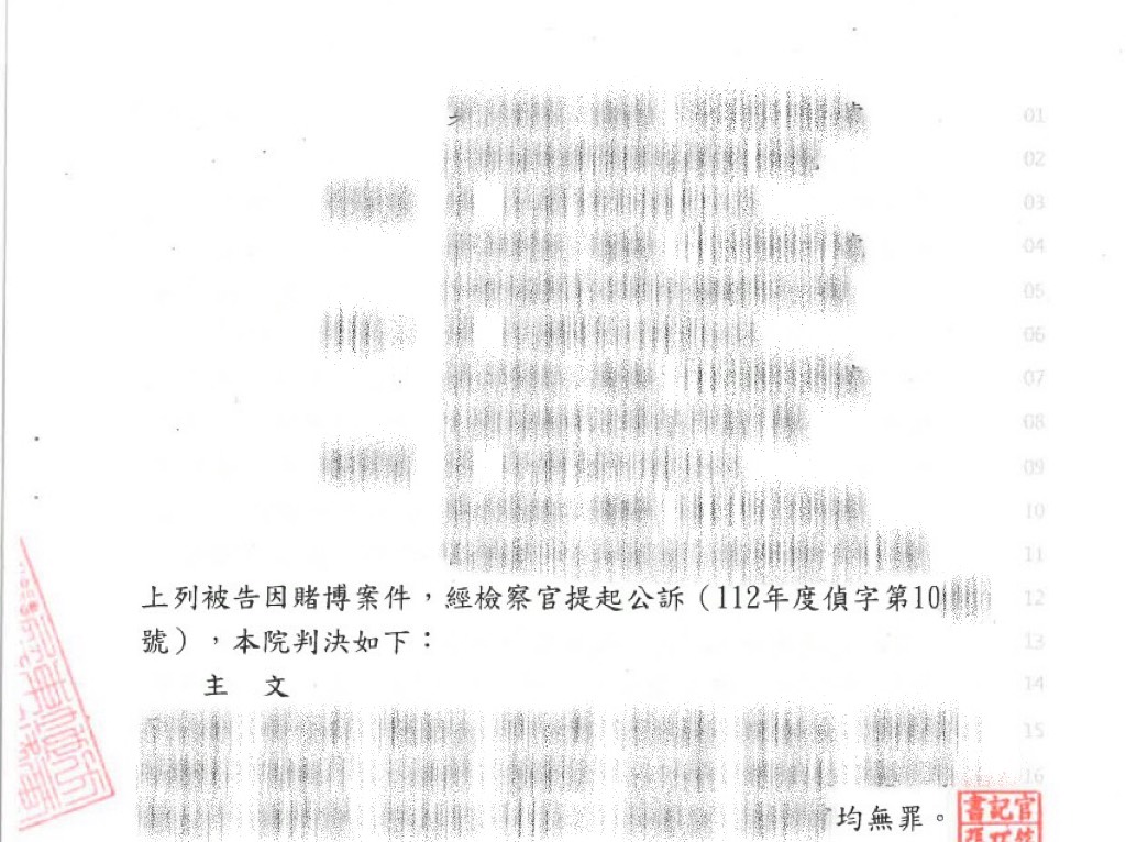 當事人因賭博案件,委任本所范家振律師,獲無罪